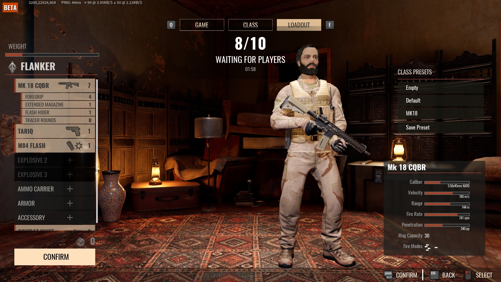 Sam MM jest już jednak gotowy, dołączając do trybu Competitive gra dobiera 10 graczy z wybranego przez ciebie regionu ( w naszym przypadku jest to EU i ewentualnie RUS). Po skompletowaniu graczy zostaje im przydzielony najbliższy serwer. Wszyscy mają 2 minuty i 30 sekund na wybranie klasy i ekwipunku do rundy i potwierdzenie wyboru poprzez naciśnięcie “Confirm”.