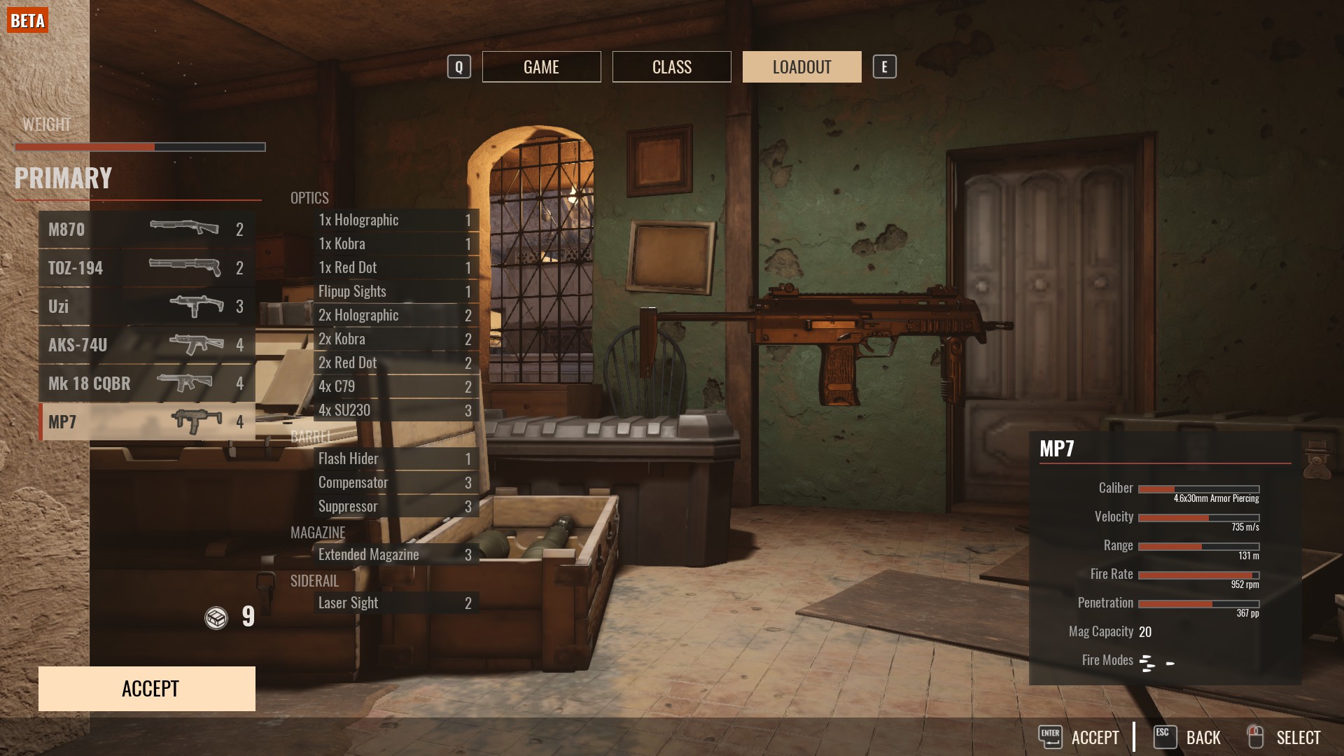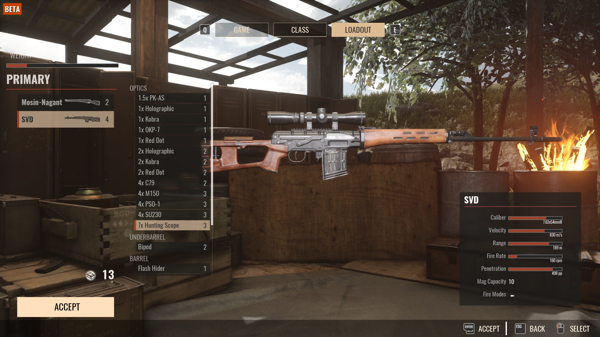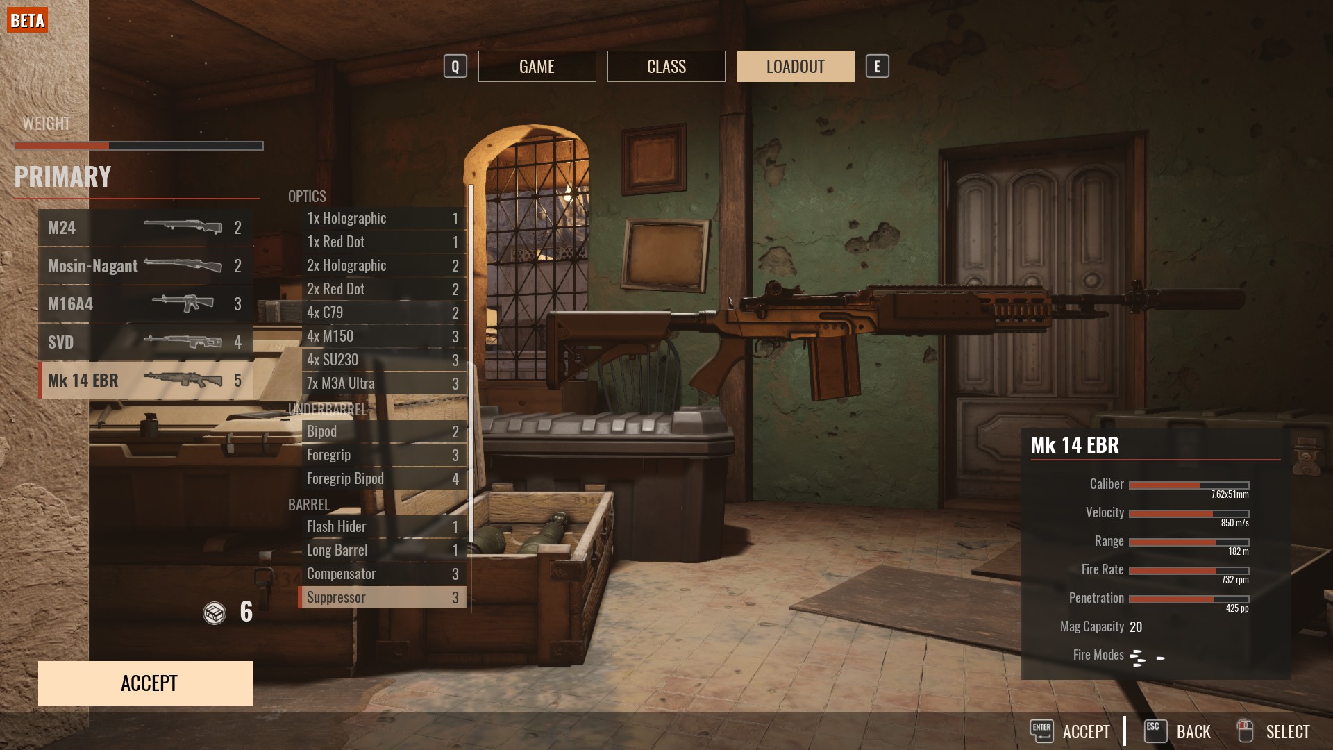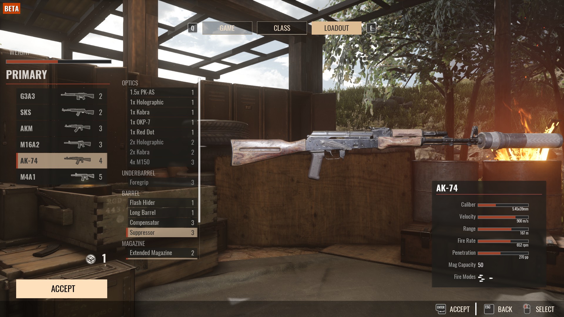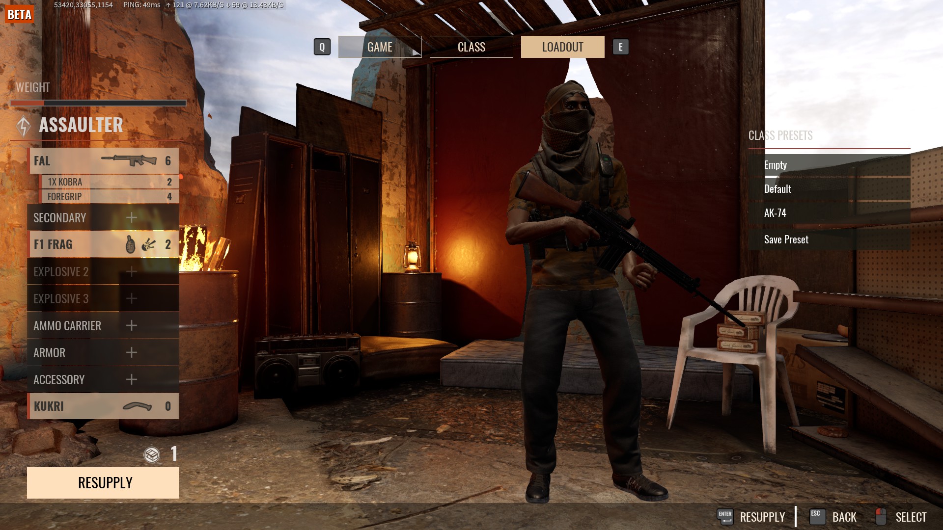 Jak widzimy wyżej nie opłaca się brać kamizelek (Armor) których bonus w ostatnim patchu został poważnie uszczuplony ani plecaków z amunicją (Ammo Carrier). Punkty wagi wydajemy na jak najlepszą broń im wyższy tier tym lepiej, warto zainwestować także w rączkę (foregrip) który poprawia stabilność podczas strzelania. W odróżnieniu od starego insurgency nie mamy tu rodzajów amunicji takich jak HP/AP co oznacza że te zmienne zostały niejako przypisane do broni.