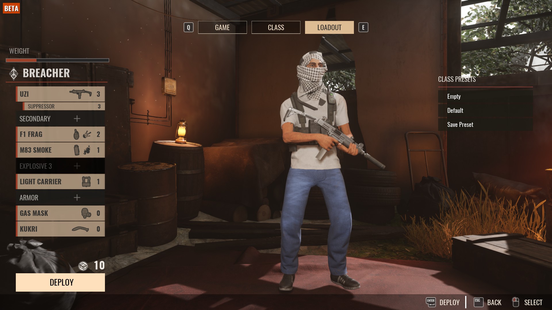 Po wybraniu klasy zostajesz przeniesiony do menu ekwipunku . Tu możesz dostosować swoją broń i sprzęt . Każda klasa ma swoją własną broń, ulepszenia broni i inny sprzęt, który jest dla niej dostępny.