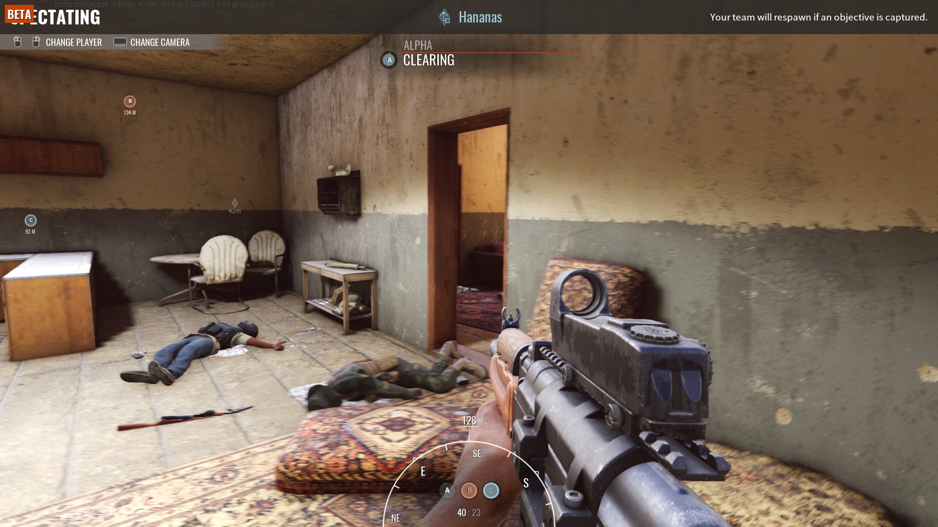 Naciskając TAB, wyświetlamy tablicę wyników wraz z mapą. Naciskając klawisz Escape, zobaczymy zasady trybu gry. Klawiszem M dostosujemy swój ekwipunek będąc w punkcie odrodzeń, działa nawet gdy jesteś martwy ale zmiany zobaczymy dopiero po odrodzeniu. Gracze odradzają się w “falach” lub po osiągnięciu celu przez swoich kolegów z drużyny. Nasza postać nie dysponuje celownikiem, żeby użyć celownika broni naciśnij PPM. Nie posiadamy dokładnych informacji o ilości posiadanej amunicji na głównym ekranie podczas rozgrywki. Żeby sprawdzić swoją amunicję, musisz przytrzymać klawisz R. Gracze nie otrzymują komunikatu o trafieniu/zabiciu przeciwnika. Żeby potwierdzić trafienie musisz sprawdzić ciało wroga.